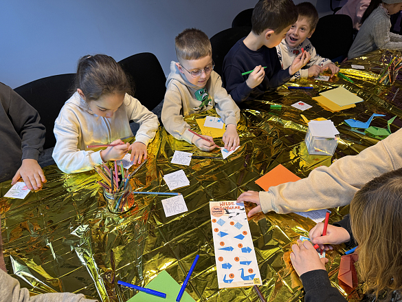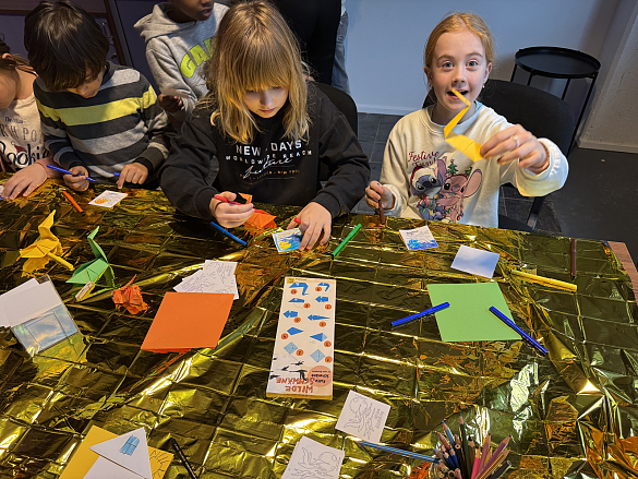 Nach dem Theaterstück gab es in den Nebenräumen des Theatersaals sowie im großräumigen Flur noch spannenden Mitmachaktionen für die Kinder, wie z.B. das Origami-Falten von Schwänen.