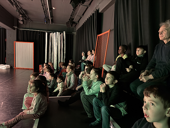 Wir durften an allen Seiten des Theatersaals Platz nehmen – so verfolgten die Kinder das Stück letztendlich aus ganz unterschiedlichen Perspektiven.