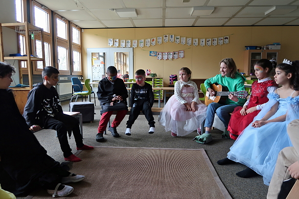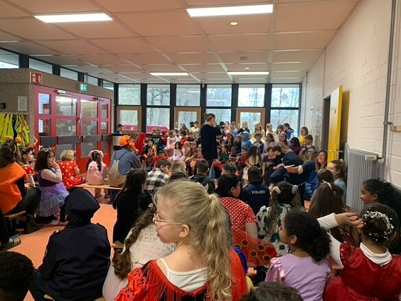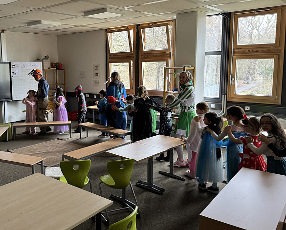 Am 12.02.2024 wurde es noch bunter bei uns. Die gesamt Schulgemeinschaft feierte ein fröhliches Faschingsfest. Zuerst in den Lerngruppen und dann gemeinsam mit einer Polonaise und beim Singen.