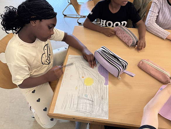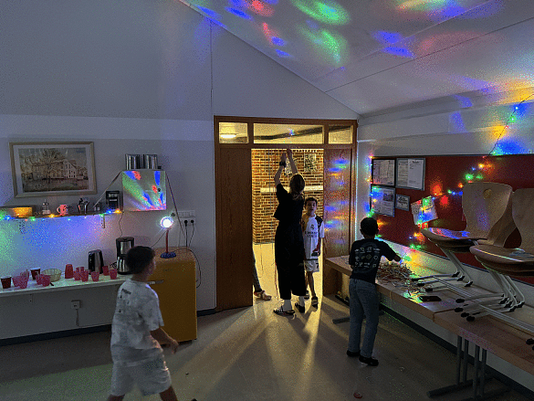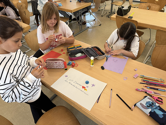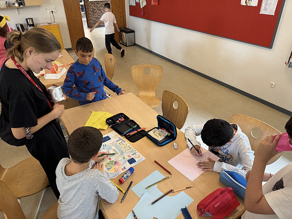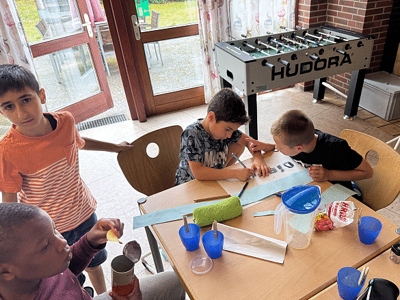Um 12:00 Uhr gab es Mittagessen. Danach gestalteten die Kinder gemeinsam Plakate für ihre Zimmer. Die Schülerinnen und Schüler konnten sich kreativ austoben mit dem Ziel, das beste Plakat zu entwerfen, um bei der späteren Abstimmung zu gewinnen.