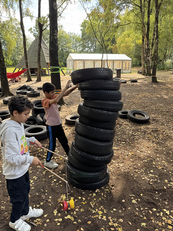 Vom 1. bis zum 3. September 2025 fuhren zum ersten Mal Schülerinnen und Schüler der Grundschule Walliser Straße auf Klassenfahrt. Wir trafen uns am Montag um 8:45 Uhr vor der Schule. Nach und nach wurde das Gepäck in die Reisebusse eingeladen, bis wir schließlich um 9:30 Uhr zum Schullandheim losfahren konnten. 40 Minuten dauerte unsere Fahrt zum Naturerlebnishaus am Buchenholz in Hepstedt, nordöstlich von Bremen.