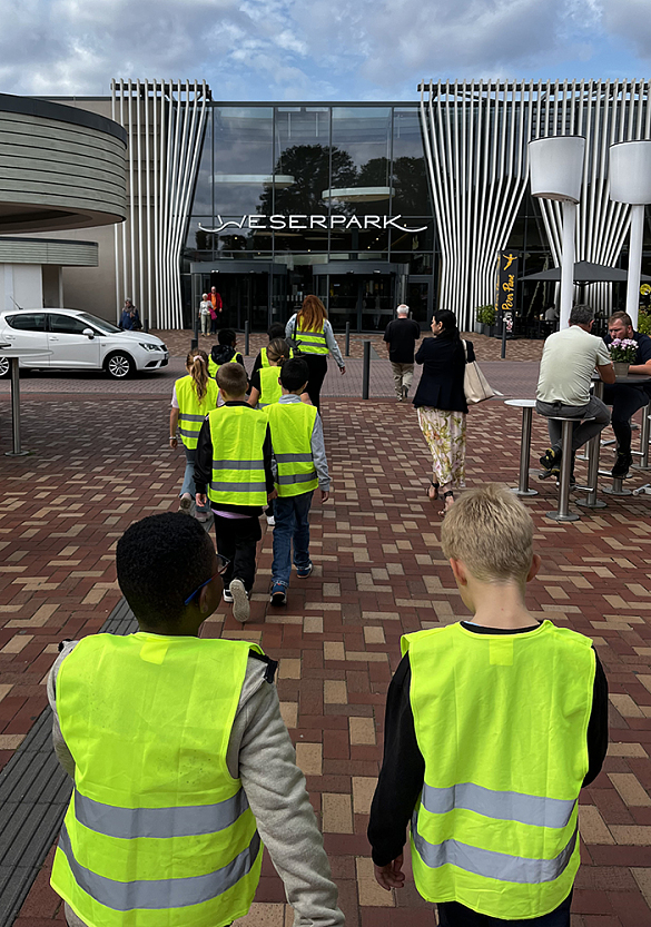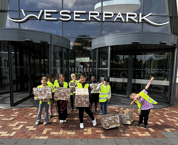 Stolz auf ihre eigenen Drumm-o-phones verlassen die Kinder den Weserpark