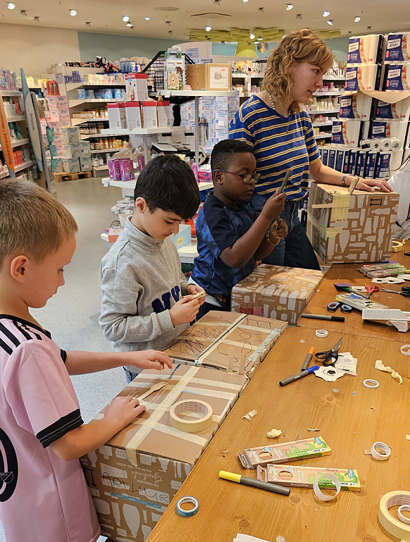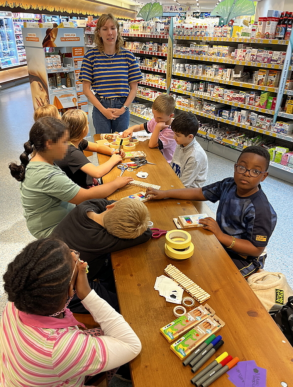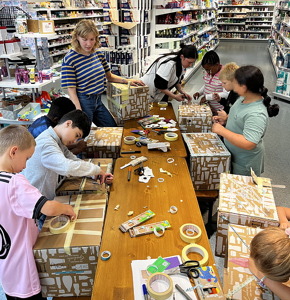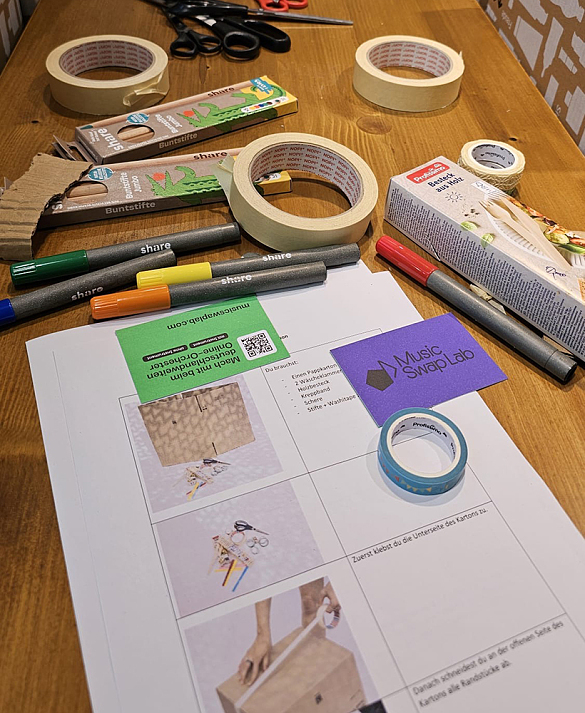 Der Workshop fand in der dm-Filiale im Weserpark statt. Dafür sind die Schüler und Schülerinnen mit der Straßenbahn zum Weserpark gefahren. Vor Ort haben sie gemeinsam mit einem Mitglied des Zukunftslabors und einer dm-Mitarbeiterin ein Instrument aus recycelten Materialien gebaut, das "Drum-o-phon". Die Grundlage war dabei ein Pappkarton, der mit verschiedenen Instrumenten aus Pappe, Wäscheklammern und Holzbesteck erweitert und anschließend verziert wurde. Am Ende haben die Schüler und Schülerinnen die verschiedenen Klänge des Instruments – von der Basstrommel bis zur Kastagnette und Löffelschnarre – ausprobiert und gemeinsam Musik gemacht.