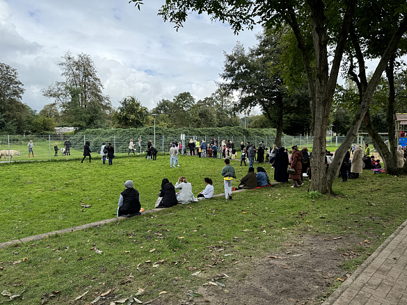 Die Schüler:innen und ihre Familien auf dem Schulhof