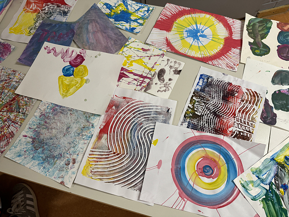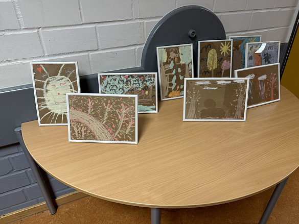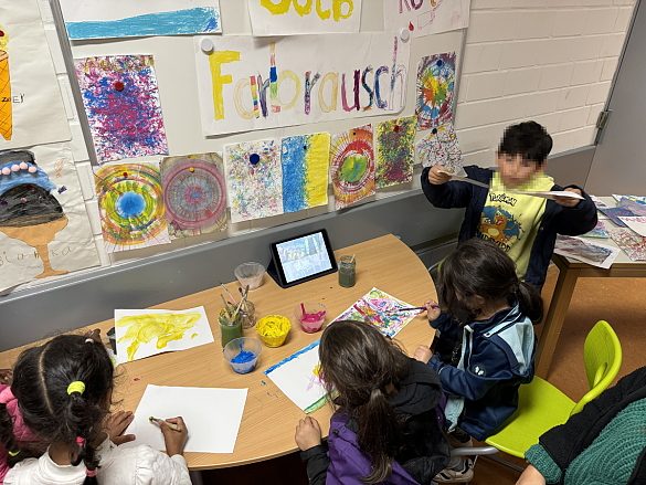 Im Schulgebäude stellten einige Projekte Fotos, gestaltete Bilder und Kunstobjekte aus. Darüber hinaus wurde das von den "Gemüse-Ackerdemie"-Projektteilnehmer:innen angepflanzte Gemüse mit der Möglichkeit einer freiwilligen Spende für den Schulförderverein verteilt. Ebenso gab es im Erdgeschoss Malangebote für die Kinder und ihre Geschwister.