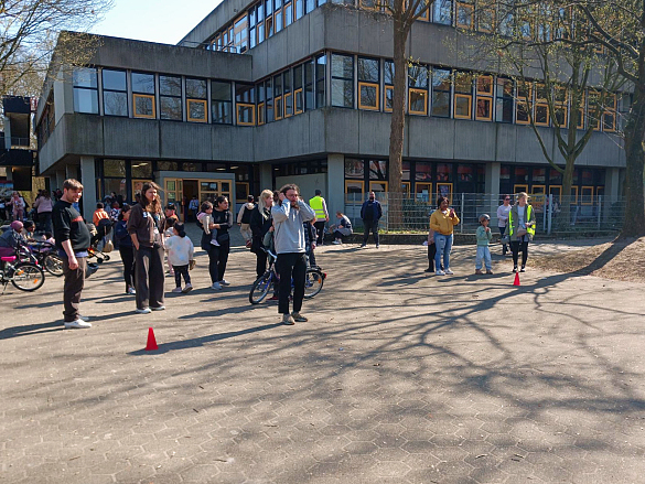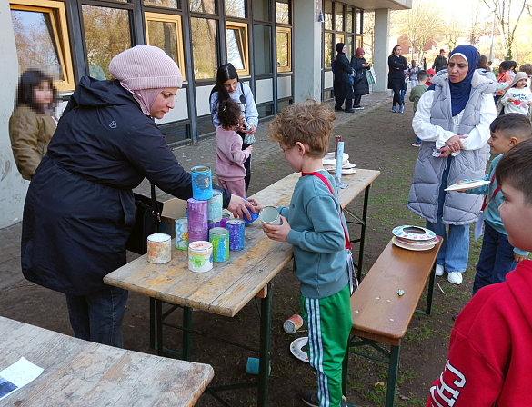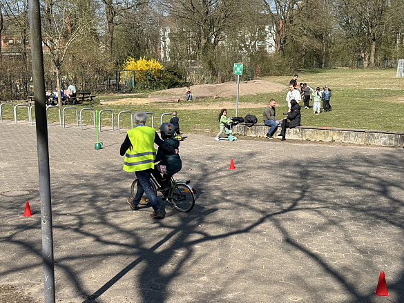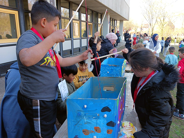 Auf dem Schulhof gab es Mitmachangebote und Spiele, wie z.B. einen Fahrradparcours, Dosenwerfen und ein Angelspiel. Ebenso hatten die Familien draußen die Möglichkeit, ein Picknick mit ihren Kindern und anderen Familien zu machen.