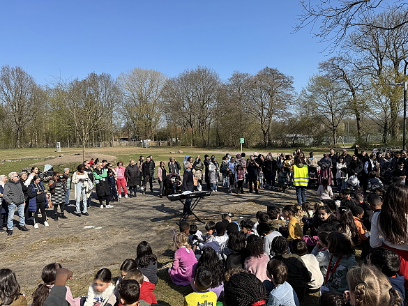 Um 14:30 Uhr traf sich die Schulgemeinschaft auf dem Schulhof für das gemeinsame Singen bei bestem Frühlingswetter, bevor das Schulleitungsteam ein paar abschließende Worte an Besucher und an die Eltern richtete.
