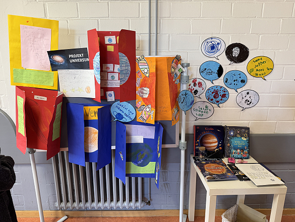 Wie bei den vergangenen Lernfesten bauten wir im Erdgeschoss unserer Schule eine Ausstellung zu zahlreichen Projekten auf, darunter verschiedene Kunstprojekte, ein Projekt über das Universum, das Englischprojekt, das Kinderrechte-Projekt, das Sockentiere-Projekt und noch weitere.