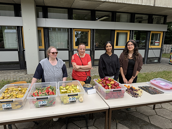 Unsere fleißigen Helferinnen bieten Obst und Kuchen an
