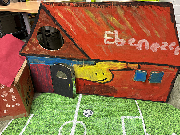 Gebastelte Häuser von den Teilnehmer:innen des Projekts Stadt der Träume