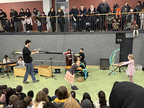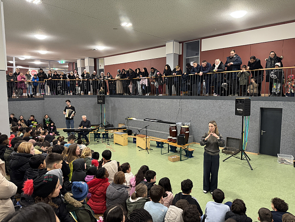 Wie bei jedem Lernfest beendeten wir die Veranstaltung feierlich mit unserem gemeinsamen Singen der Schulgemeinschaft. Dabei hatten die Kinder des Projekts Klangwerkstatt einen besonderen Auftritt, als sie winterlicher Lieder instrumental begleiteten.