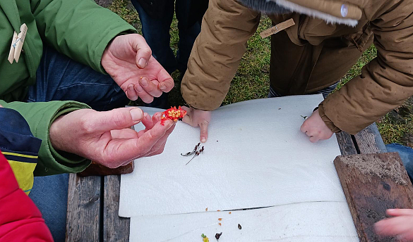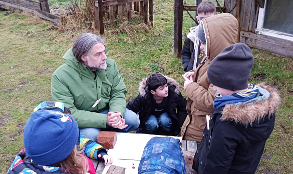 Wir machen aber auch Gartenprojekte. Die Mitarbeiter:innen Svea Eckert und Roland Wozniewski vom Verein bereiten die Angebote kindgerecht vor.