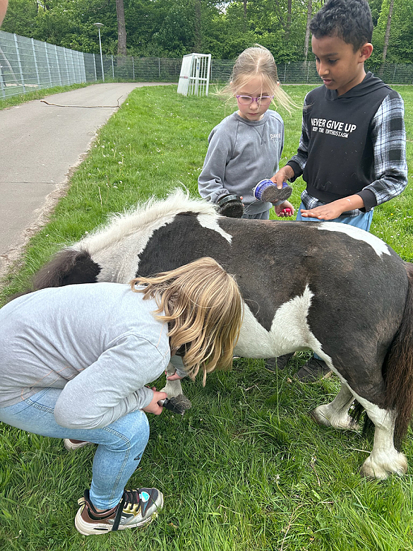 In diesem Projekt lernen die Schülerinnen und Schüler etwas über die Pflege von Pferden und Ponys, das richtige Futter und den verantwortungsvollen Umgang mit den Tieren. Im Vordergrund steht dabei die Praxis, also der persönliche Kontakt zu den Ponys. Die Kinder führen die Ponys bei Spaziergängen, streicheln, putzen und füttern sie.