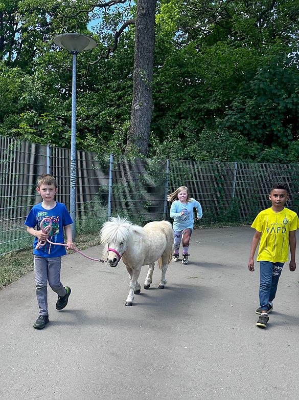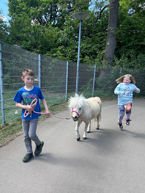 Ein Ausflug zum Schimmelhof gab den Kindern zudem einen Einblick in das Leben auf einem Reiterhof und zeigte ihnen, wie der Alltag mit Pferden und Ponys aussieht.
