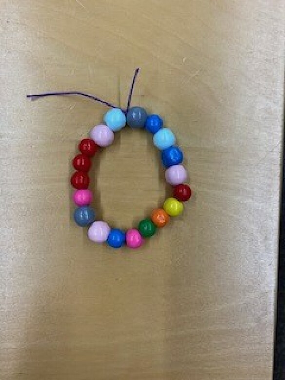 Mithilfe von Wolle und bunten Holzperlen konnten wir eigene Armbänder herstellen.