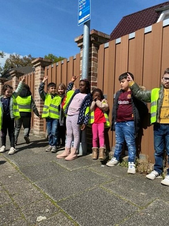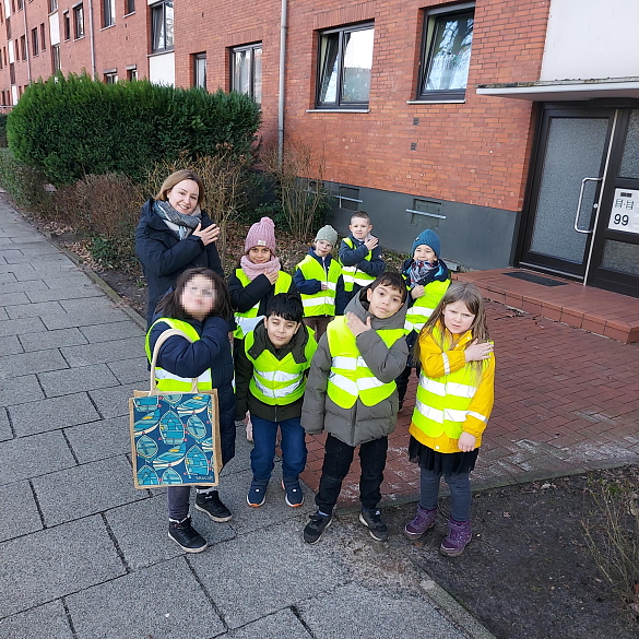 Im Projekt "Schulumgebung erkunden" haben die Kinder gemeinsam ihren Stadtteil Osterholz Tenever erkundet. Wir haben uns den Schulweg mit seinen Straßenschildern genauer angesehen, Verkehrsregeln geübt und sind sogar mit der Straßenbahn gefahren.