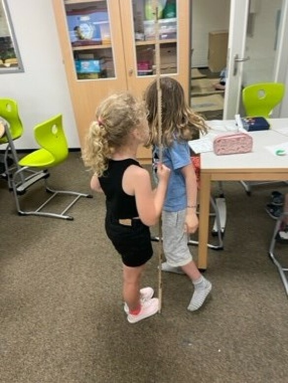Wir haben Gegenstände nach ihren Längen und Gewichten verglichen und sortiert. Mit unserem Körper und verschiedenen Messgeräten haben wir die Schule ausgemessen.